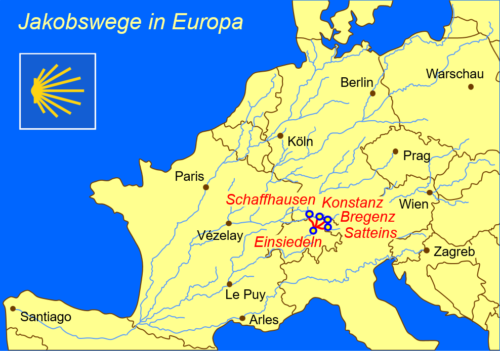 Schwabenweg wird der Jakobsweg von Konstanz bis Einsiedeln genannt. Die Karte zum Jakobsweg in der Schweiz. Es ist nicht der Rede wert über die Differenz zu reden denn allein die Umwege durch.