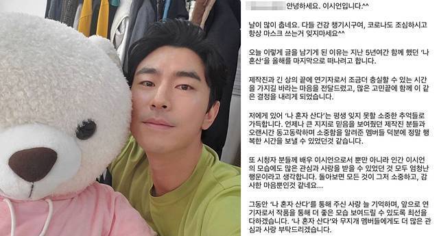 이시언은 지난 25일 방송된 MBC 나 혼자 산다 377회를 끝으로 5년 만에 하차했다. 하차이유가 밝혀져 그동안의 루머를. 이시언은 나혼자산다에 대한 버팀목이 크다 보니 연기에 대한 열정을 잊어가는 것 같아 하차를 결정했다고 설명했다.